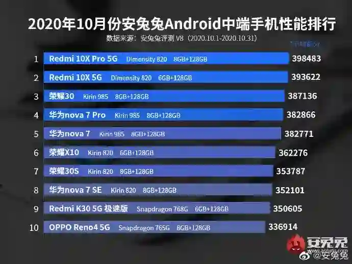 安兔兔公布 10 月安卓手机性能榜