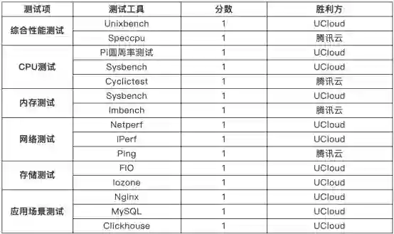 《选型指南》中腾讯云全胜,而《大PK》中则UCloud全胜,且两篇文章指标完全没有重叠。由于这些测试结论均可复现,我们相信两篇文章的测试结果是客观真实的。故直接引用其结论。