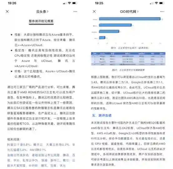 5月25日,网络上有两家 IT 自媒体分别发布了一篇关于云主机能力的开发者测评文章,分别为《腾讯云 vs Azure vs UCloud:基于AMD EPYC™ ROME云主机选型指南》和《高性能AMD云主机如何选?AWS、谷歌云、UCloud、腾讯云测试大PK》。