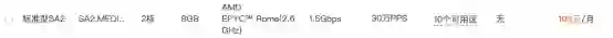 同时,《选型指南》给出的腾讯云SA2机型价格则是不含这些默认选项的。若加上1M网络/20GB SSD数据盘的费用,腾讯云SA2机型的列表价也会相应提升。例如,此处为2核8G机型,腾讯云SA2机型的列表价达到了236.5元/月,高于UCloud的227元/月。