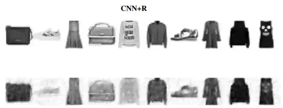 尽管上述系统是针对 CapsNet 的信息姿态参数而设计的,相同的策略也可以扩展到 CapsNet 以外的模型。通过使用标准的 CNN 并将倒数第二个隐藏层分为对应每个类别的组,我们创建了一个类似的架构「Masked CNN+R」。每个神经元组的和作为对应类别的逻辑值。并且通过 Sabour 等人使用过的相同 masking 操作,这个组自身会被传递到重建子网络。我们还研究了通过忽略 masking 并使用典型「CNN+R」模型来探索类别条件重建的作用,其整个倒数第二层被用于重建。