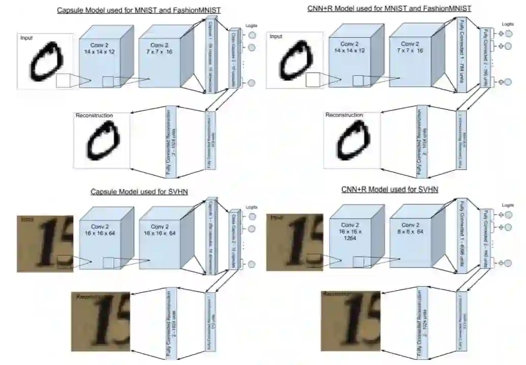 图 A.1:用于重建的 CNN+R 和 Capsule 模型的架构。