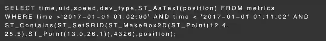 时空数据,插入是一个强需求,往往有大量设备上报轨迹、指标数据,因此对插入性能要求较高。阿里云时空数据库,单机不同规格下可以支持到数万到数十万的TPS写入。