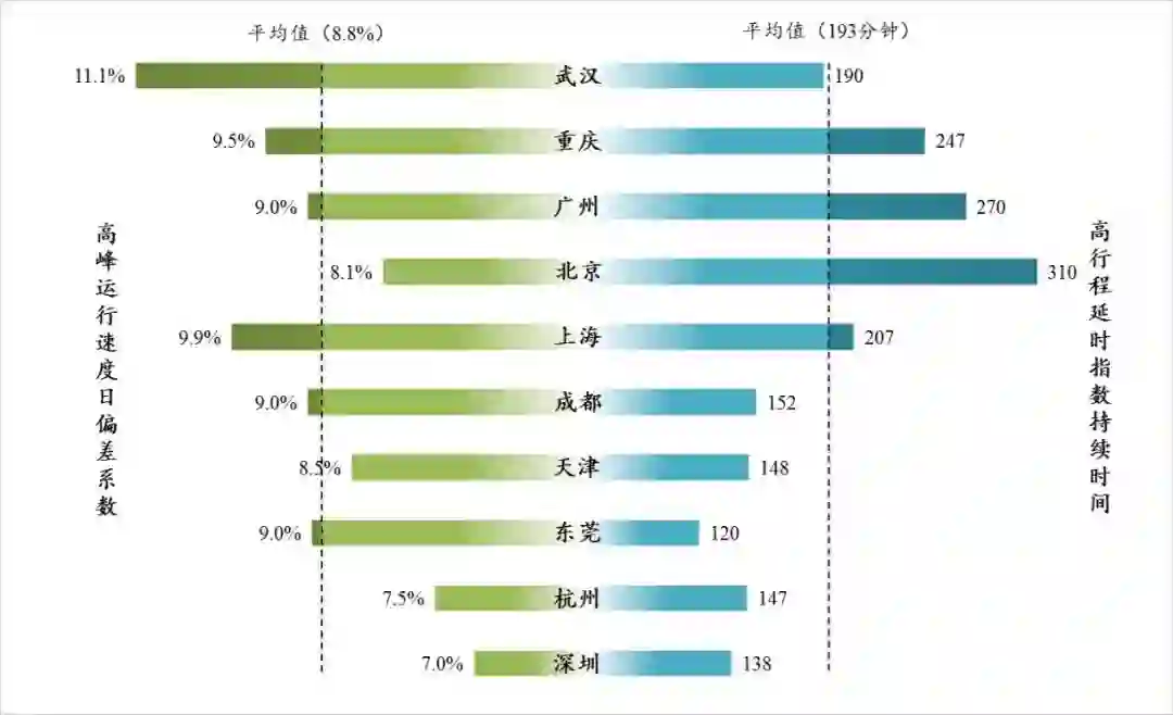 晚高峰更长:深圳、广州、东莞、武汉、成都、天津