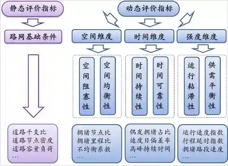 构建多维度交通运行评估指标旨在从时间、空间、强度等不同维度全面描绘城市交通运行情况,从而反映不同城市差异化的动静态规律特征。