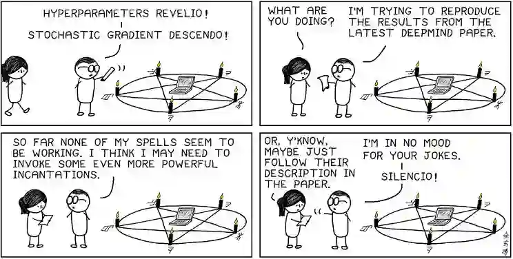 我们发现,一篇论文是否详细描述了用到的超参数是非常重要的(我们更可以凭直觉想到原因)。如果你不向读者说明超参数的设置,读者必须自己猜测。这需要付出大量的工作、时间,并且很容易出错!因此,我们的一些研究成果已经证实了研究社区为了使论文更具有可复现性而在追求的理念。