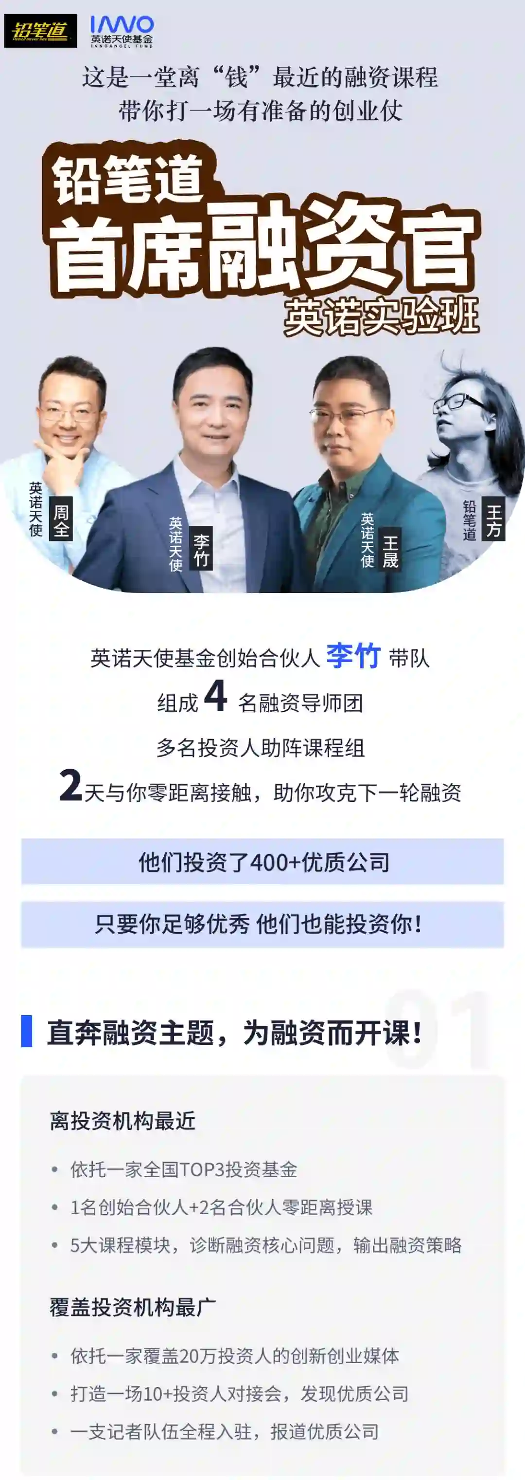 一、 将由英诺天使创始合伙人李竹亲自带队