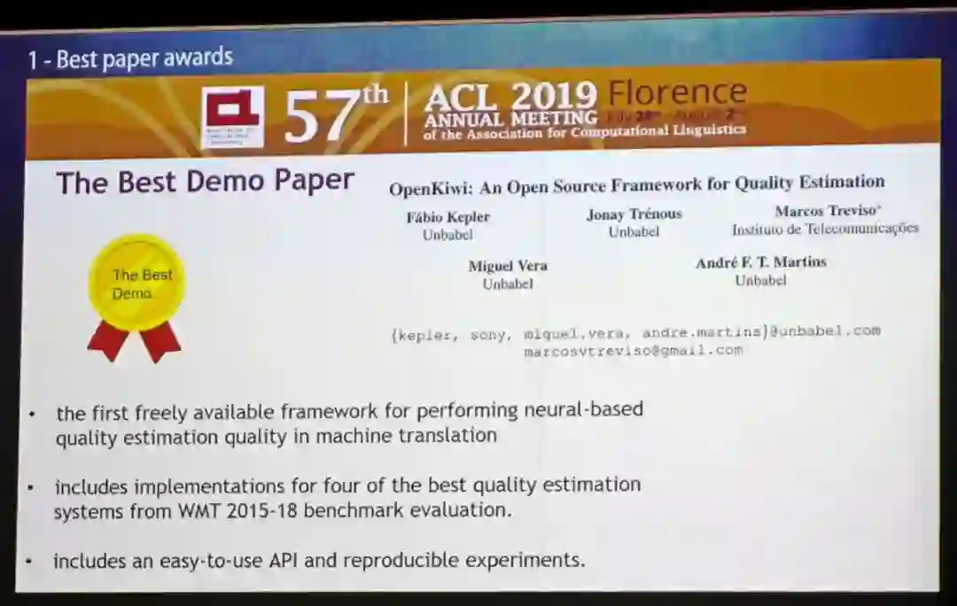 这是机器翻译中第一个可以自由使用的用于执行基于神经的质量估计的框架;