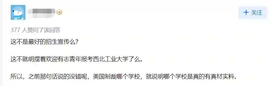 还有人觉得,这是因为西北工业大学在国防领域有重要的地位。