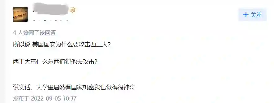 「西北工业大学遭网络攻击的源头系美国国家安全局」的调查结果公布后,有网友不解: