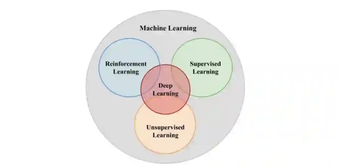 强化学习既不是监督学习,也不是无监督学习。强化学习的目标是获得最大的预期累积奖励(Sutton & Barto, 2018)。图2展示了机器学习、监督学习、无监督学习、强化学习和深度学习之间的关系。