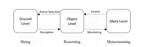 图3 元推理的经典决策-行动循环图,推理发生在目标层面,以选择将发生在应用层的行动,而元推理发生在元层面,以控制发生在目标层面的行动。