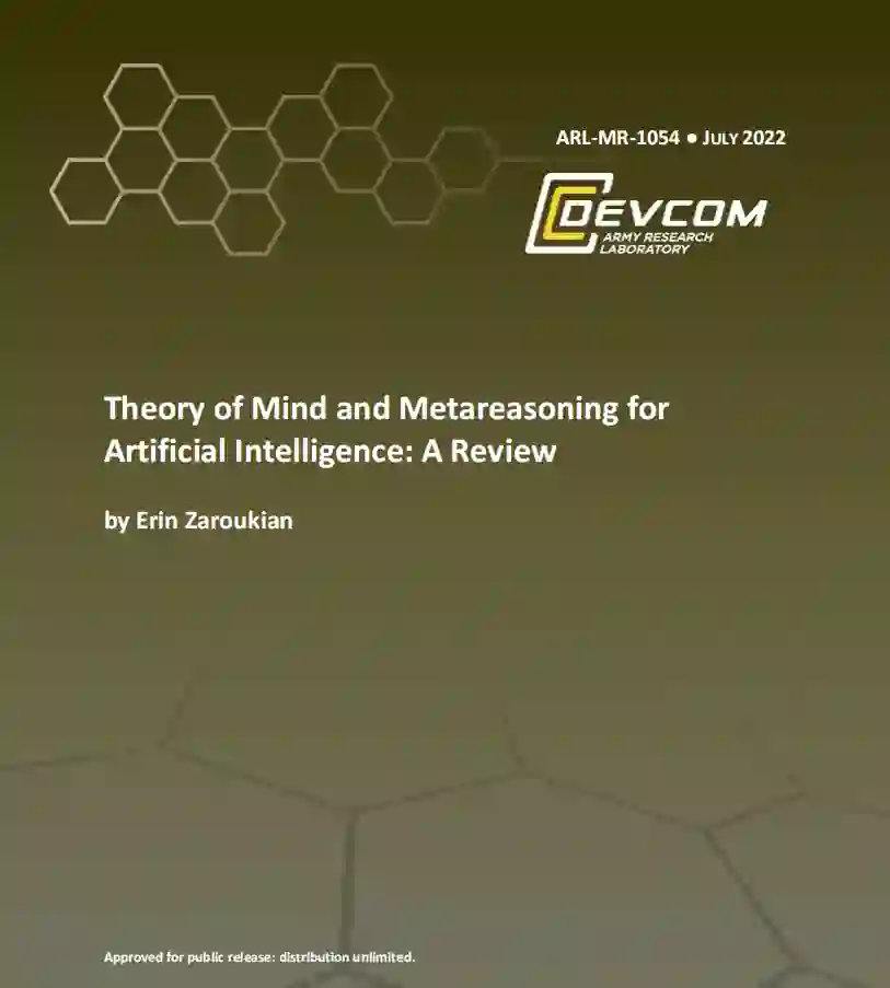 心智理论(ToM)和元推理,正如下文所讨论的,已经成为人工智能(AI)和人-Agent团队的关注领域。两者都有希望通过从人类身上获取灵感,开发出更强大、更有协作性、甚至更像人类的系统。ToM,通过关注他人的心理状态(或其计算机类似物),以及元推理,作为对这些心理状态的一种推理形式。以下两节概述了心智理论(ToM)和元推理,包括在复杂环境中执行多域作战的多人/Agent系统的过去和潜在应用。