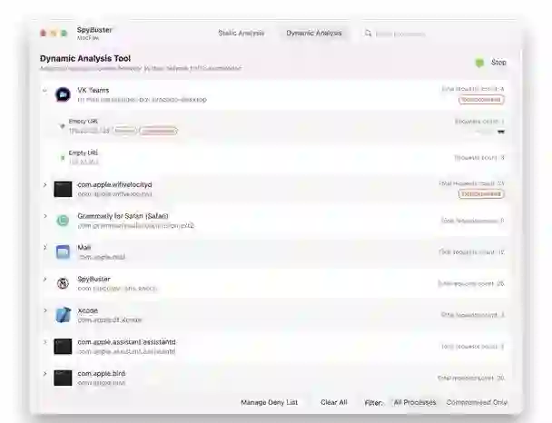目前,SpyBuster 可与运行 macOS 10.15 及以上版本的 Mac 兼容,且有两个分析选项:静态分析和动态分析。