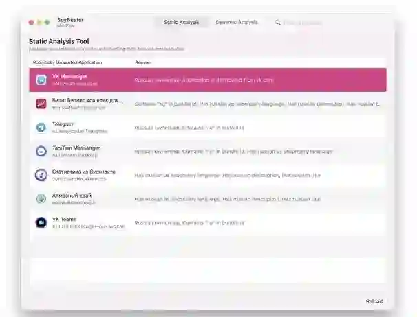 静态分析可显示 Mac 中与俄罗斯或白俄罗斯有某种关联的应用: