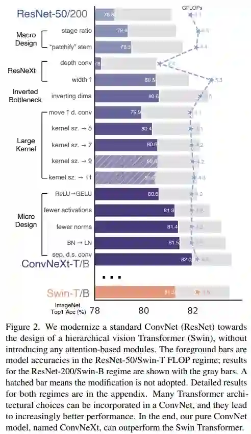 来自 FAIR 、UC 伯克利的研究者重新检查了设计空间并测试了纯 ConvNet 所能达到的极限。研究者逐渐将标准 ResNet「升级(modernize」为视觉 Transformer 的设计,并在此过程中发现了导致性能差异的几个关键组件。