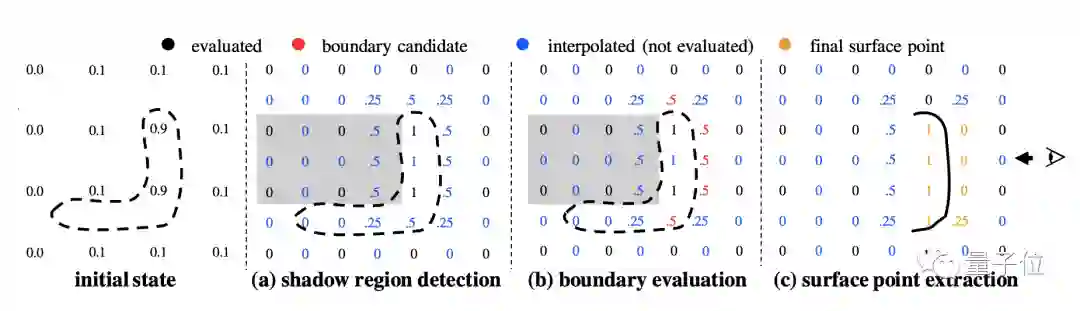 为此,黄锃和团队里的李瑞龙、修宇亮等一起提出了一种新颖的分层表面定位算法,和一种无需显式提取表面网格的直接渲染方法。