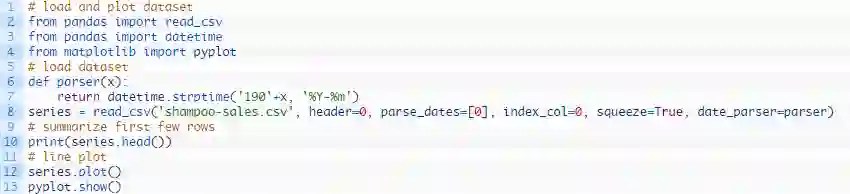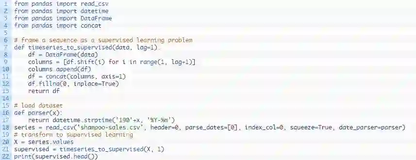 我们可以用载入的洗发水销量数据集测试该函数,并将它转化为监督学习问题。
