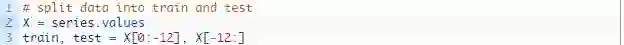 我们将把洗发水销量数据集分为两组:训练组和测试组。