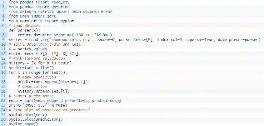 洗发水销量数据集持续性预测模型的完整示例如下所示。