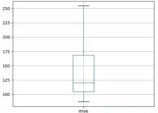 我们可以将模型拟合和步进验证包含在固定重复次数的循环语句中。运行每次迭代得到的均方根误差都能记录下来。然后我们可以总结均方根误差的分布。