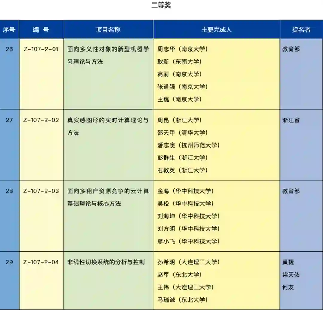 多个人工智能领域的项目获得 2020 年度国家自然科学奖二等奖,项目信息如下,来自南大周志华教授、浙大周昆教授、华中科技大学金海教授等多个团队,涉及机器学习理论、图形学、深度学习处理器等研究方向。