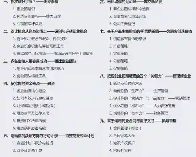 系统。整套商品基于创业的关键步骤而设计,内容自成体系且创业要点突出,可以一路支撑读者的创业成长;
