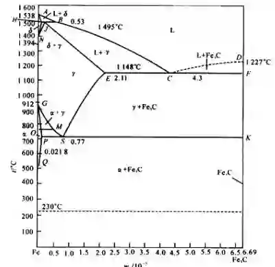 铁素体区(α)——GPQ(Fe3C)——DFK直线以左