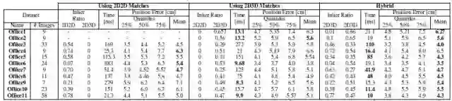 4.在5维度问题上,基于通过SLAM系统获得的11个场景的数据分析,得出混合求解器的在大部分场景中的处理精度与论文[29]提出的最先进的方法相当,且解算时间大部分基于简单的2D-3D的解算器相当的结论。