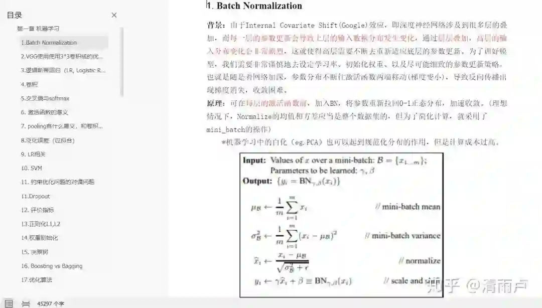 ,比如我就组织了我们实验室的五个小伙伴建立一个讨论小组,每天轮流三个人每个人准备一个问题,把问题准备到上面的那个地步,将自己组织好的问题答案共享到腾讯文档,然后每天晚上八点半大家一起讨论。这样还有一个好处就是一个人去理解一个问题的时候往往很容易陷入牛角尖,理解的也很容易片面,但大家一起讨论之后,基本就能很快豁然开朗了。这么准备起来,每天其实只要花很少的时间就可以在相对较短的时间内把这个环节准备的非常充分了。以下是我们讨论小组准备的材料部分预览,我们5个花了大约一个月的时间,共讨论了约70+的问题,约四万五千字的文档使我在面试过程中,基本没有遇到过没讨论过的问题。这些问题可以自己觉得重要的,或者去牛客网上找面经中的问题,同时也非常推荐