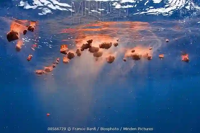 磷虾含有的虾青素使得蓝鲸的便便呈现橙红色 | Franco Banfi / Biosphoto / mindenpictures