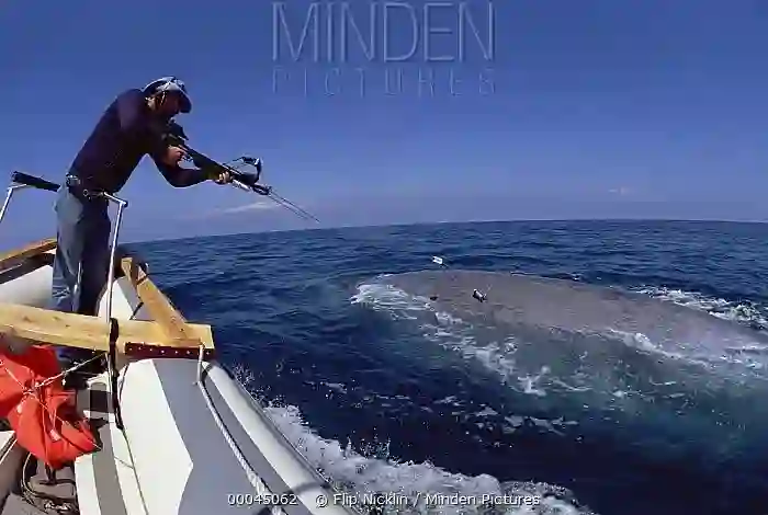 6年后,《捕鲸管理国际协定》出台。这份公约对当时已经接近枯竭的灰鲸和露脊鲸进行了保护,并要求各国不得捕获未达“最小体型”的蓝鲸,并严禁捕杀正在哺育幼崽的雌性。很显然,协定希望藉此对蓝鲸幼崽加以保护。
