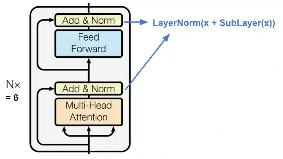 每个编码子层之间都采用残差连接方式,并且使用层归一化(layer normalization)。