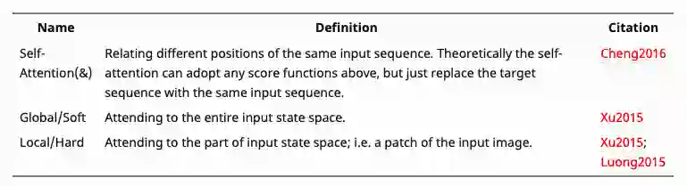 下面总结了一些更广义的应用到注意力机制的方法: