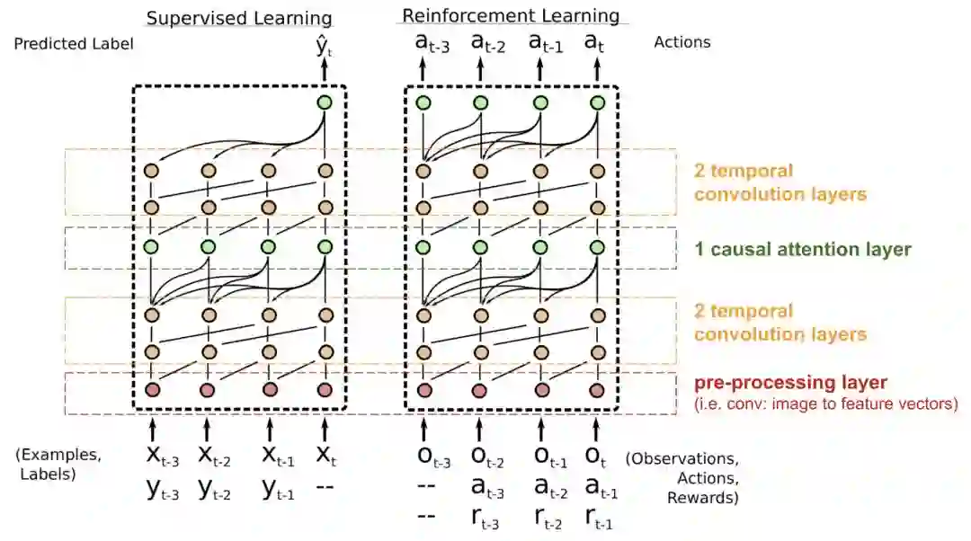 简单神经注意力元学习(Simple Neural Attention Meta-Learner)简称SNAIL,通过将Transformer的自注意力机制与时序卷积相结合,部分解决了模型中位置编码的问题。它已被证明擅长解决监督学习和强化学习任务。