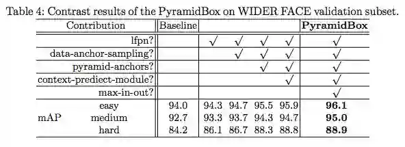 表 4:PyramidBox 在 WIDER FACE 验证子集上的对比结果。