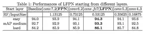 表 1:从不同层开始的 LFPN 的表现。