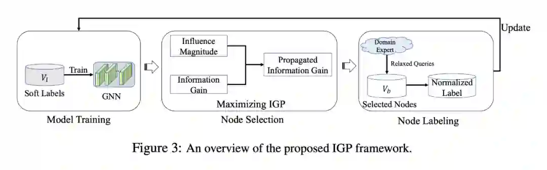 该论文提出了 IGP 方法,这是第一个考虑软标签情况下基于图神经网络的主动学习方法,具体来说,IGP 结合领域专家和图神经网络模型,在有限预算的情况下详尽地标记节点。IGP 允许使用轻松的查询,即领域专家(oracle)只判断预测标签的正确性而不是准确的分类,并且通过最大化信息增益传播来进行选点。对与真实世界数据集的实证研究表明,IGP 方法在很大程度上优于其他方法,尤其是在类数量很大的专家领域情况下。