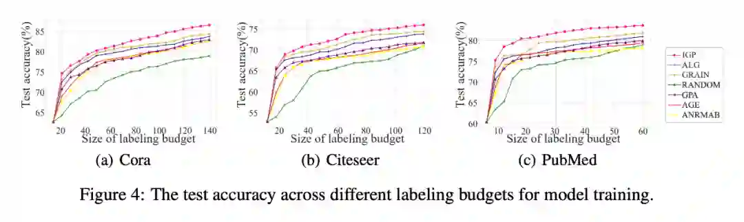 我们将选点的预算设置为节点类目数量的二十倍,所得的结果如下,可以看出 IGP 显著优于其他方法。