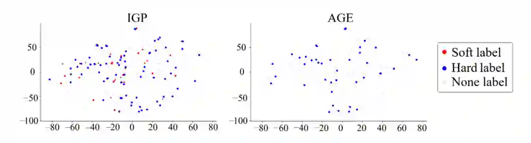 主动学习通过更好的样本点选择来提高模型的效果和效率。常见的主动学习方法有如下几种:不确定性抽样方法通过考虑信息量选择模型预测最不确定的节点;Query-by-Committee [3] 方法训练一个模型委员会,并根据模型不同意的程度选择样本;基于密度、聚类和多样性的方法选取选择最具代表性的样本。此外,针对多标签分类问题和类不平衡问题也有相应的方法。