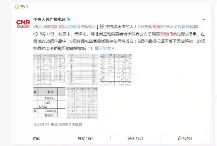 据京津冀三地消费者协会联合公布的网售智能门锁测试结果显示:在测试的38把样品中,6把样品极低温环境下无法解锁;8把样品电磁兼容试验存在异常反应;24把样品的IC卡钥匙可被破解复制;30把样品可靠性差;32把样品可用制作的假指纹解锁。