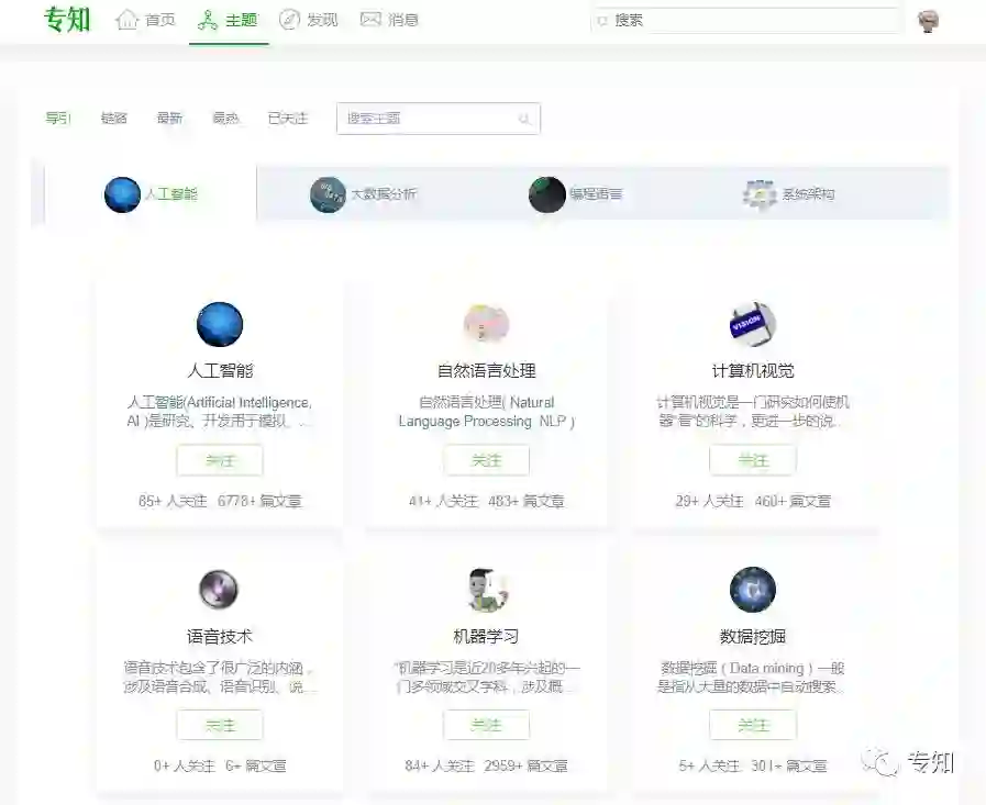 搜索发现:基于ElasticSearch构建了专知搜索发现,加入对主题索引,可以让你快速、精准触达专知沉淀的关于人工智能的资讯内容、主题、链路知识等资源。
