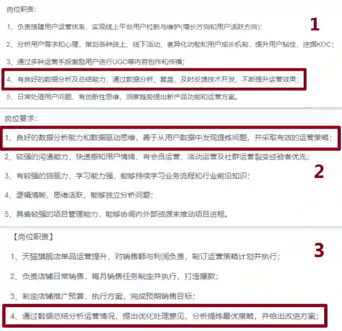近些年各行各业运营的招聘要求都要求具备数据分析能力,数据分析也从几年前的“求职加分项”变成了如今的“必备能力项”。