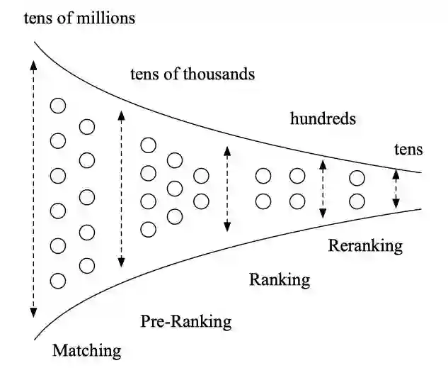 在搜索,推荐,广告等需要进行大规模排序的场景,级联排序架构得到了非常广泛的应用。以阿里的在线广告系统为例,按顺序一般包含召回,粗排,精排,重排序等模块。