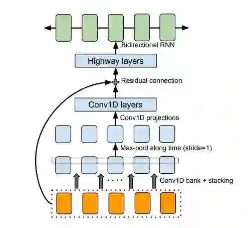 这里使用的 CBHG 模块是 state-of-art 的 seq2seq 模型,用在 Google 的机器翻译和语音合成中,结构如下: