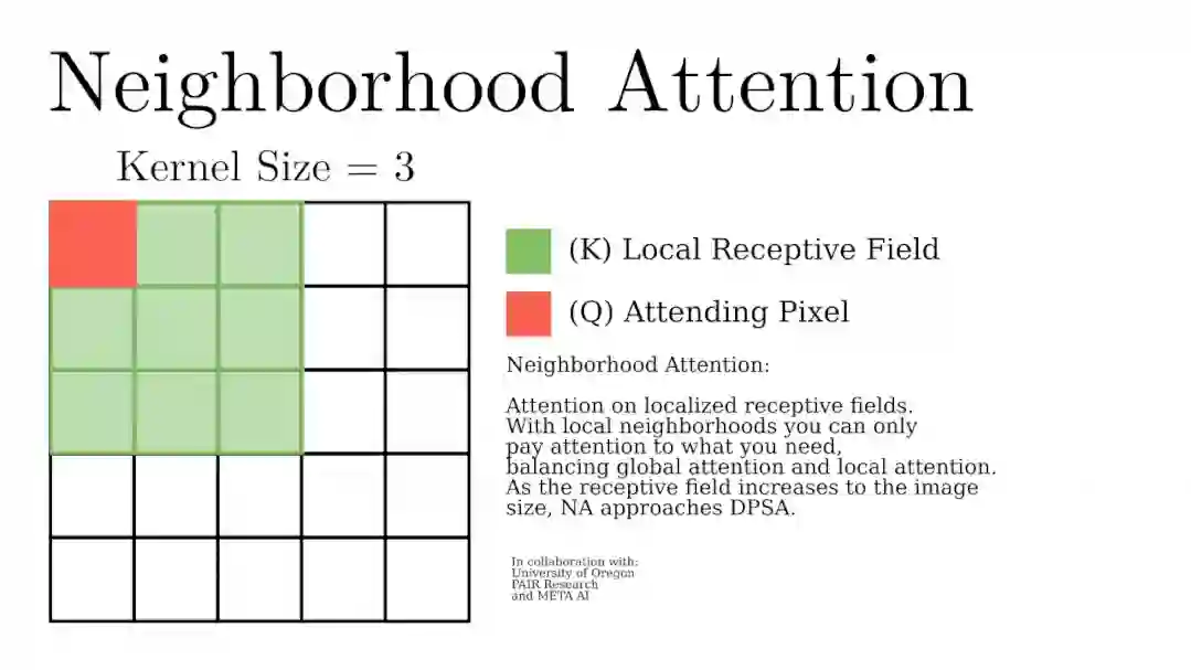 对于提出的Neighborhood Attention而言,如果邻域窗口超出或者正好等于特征图大小,那么就可以等效为标准的Self Attention了。