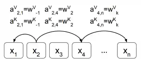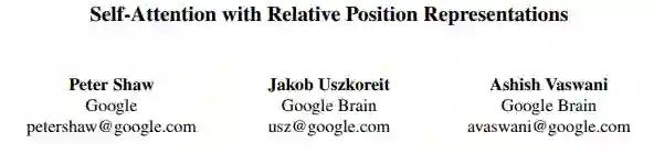 Vaswani等人在2017年介绍了一个完全依靠注意力机制的序列表示方法——Transformer,取得目前最好的机器翻译成绩。与递归神经网络和卷积神经网络相比,它没有在网络结构中显示地建模相对或绝对位置信息。相反,它需要在输入中添加绝对位置的表示。在这项工作中作者提出了另一种方法,将自注意力机制扩展到有效地考虑相对位置的表示,或序列元素之间的距离。在WMT2014从英语到德语和从英语到法语的翻译任务中,本文方法相比绝对位置表示分别提高了1.3 BLEU 和0.3 BLEU。值得注意的是,作者观察到将相对位置和绝对位置表示结合在一起,并不会进一步改进翻译质量。作者描述了本文方法的一个有效实现,并将其转换为一个关系感知的自注意力机制(relation-aware self-attention mechanisms)的实例,该机制可以推广到任意图形标记输入(graph labeled inputs)。