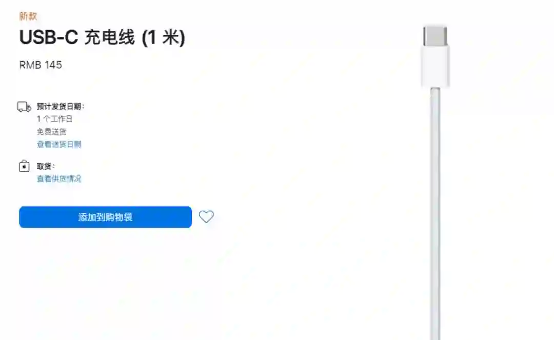 本月,苹果发布了搭载 M2 芯片的 2022 款 iPad Pro,并为其配备了一条 1 米长 USB-C 编织充电线。与此同时,苹果官网也单独上架了这款充电线,售价为 145 元。