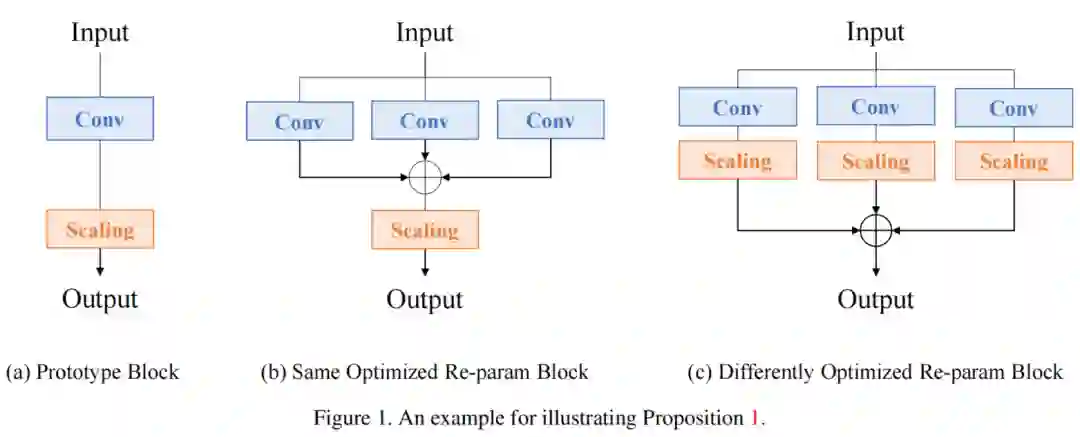 Block中的所有线性层,例如深度卷积、平均池化和所提出的线性缩放,都可以用带有相应参数的退化卷积层来表示; Block可以由一系列并行分支表示,每个分支由一系列卷积层组成。