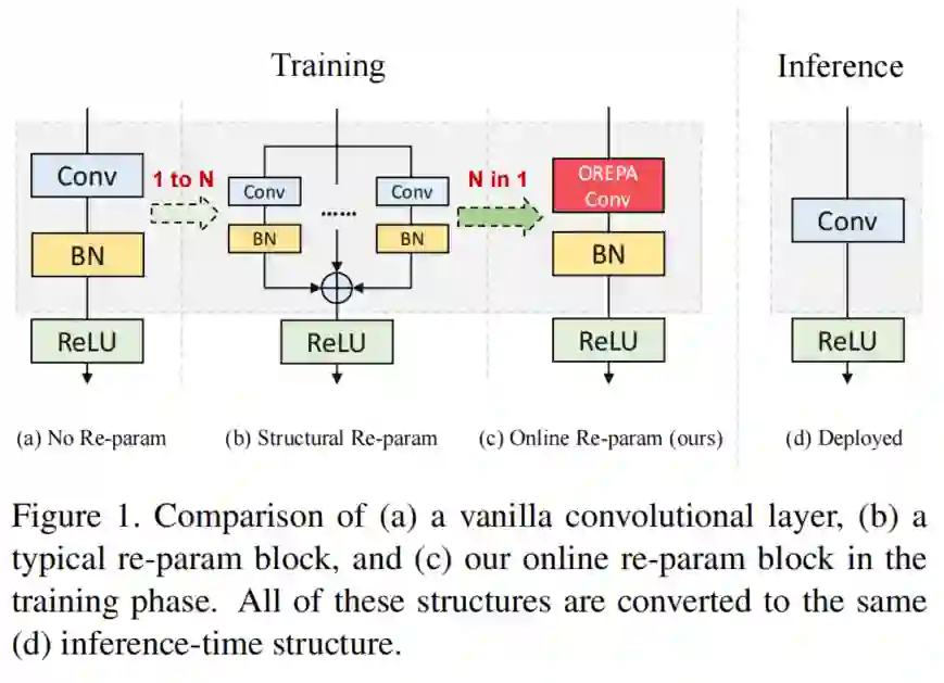 training-time block来实现较高的准确性,从而导致了巨大的额外训练成本。在本文中提出了在线卷积重参化(OREPA),一个两阶段的pipeline,旨在通过将复杂的